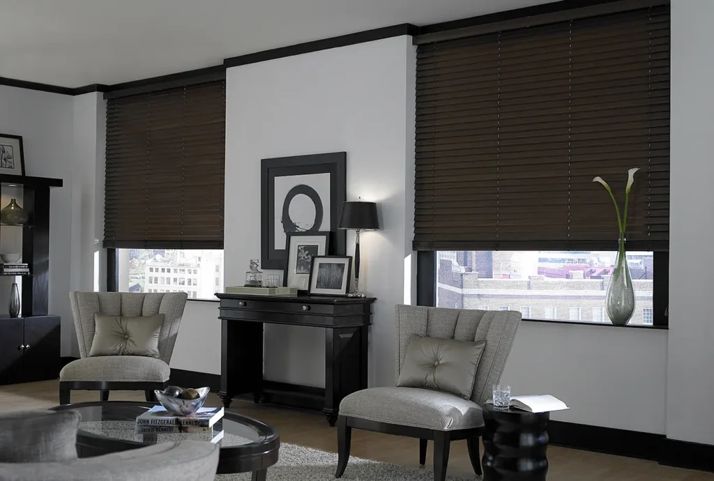 Wood blinds, also known as wooden blinds or Venetian blinds, combine the warmth of natural materials with the functionality of modern design. Available in a range of finishes, slat sizes, and colors, these custom window treatments enhance your décor while providing excellent light control and privacy. Crafted from durable hardwoods, they bring timeless style, energy efficiency, and lasting value to any room.