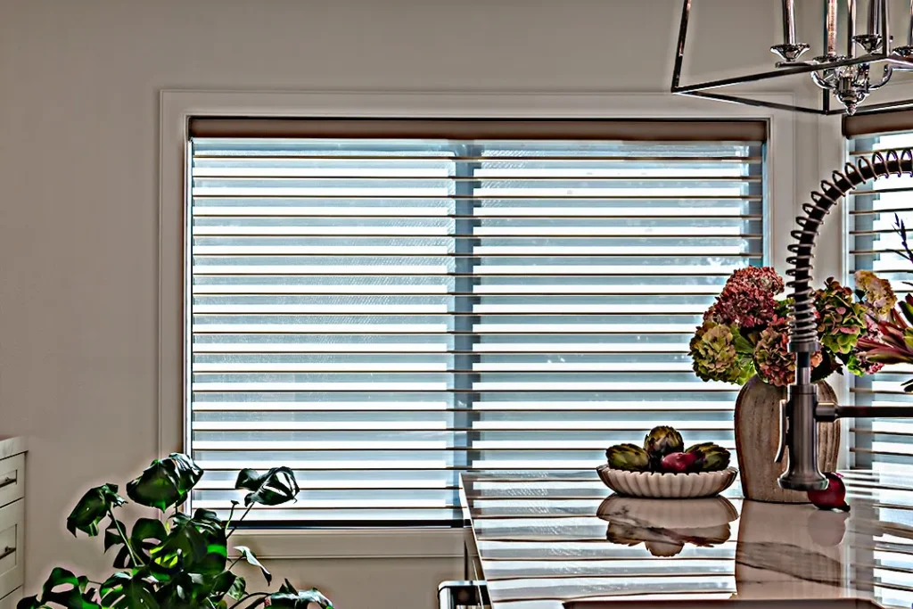 Sheer shades are ideal for living rooms where natural light is welcome but privacy is still important. The layered fabric diffuses harsh sunlight, creating a soft, inviting glow while protecting against glare. Adjust the vanes to enjoy your view without sacrificing comfort.