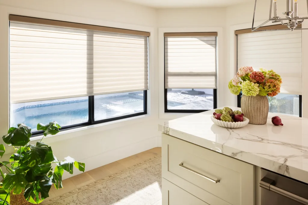 These window treatments are perfect for kitchens that get strong midday sun. They help filter brightness over sinks and prep areas while preserving the outside view. Their easy-to-clean fabrics and smooth operation make them a functional yet stylish choice for this high-use space.